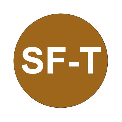 Button cap, round SF-T brown cap with white lettering. Can be used on a Taprite or Wunder-Bar™ bargun.