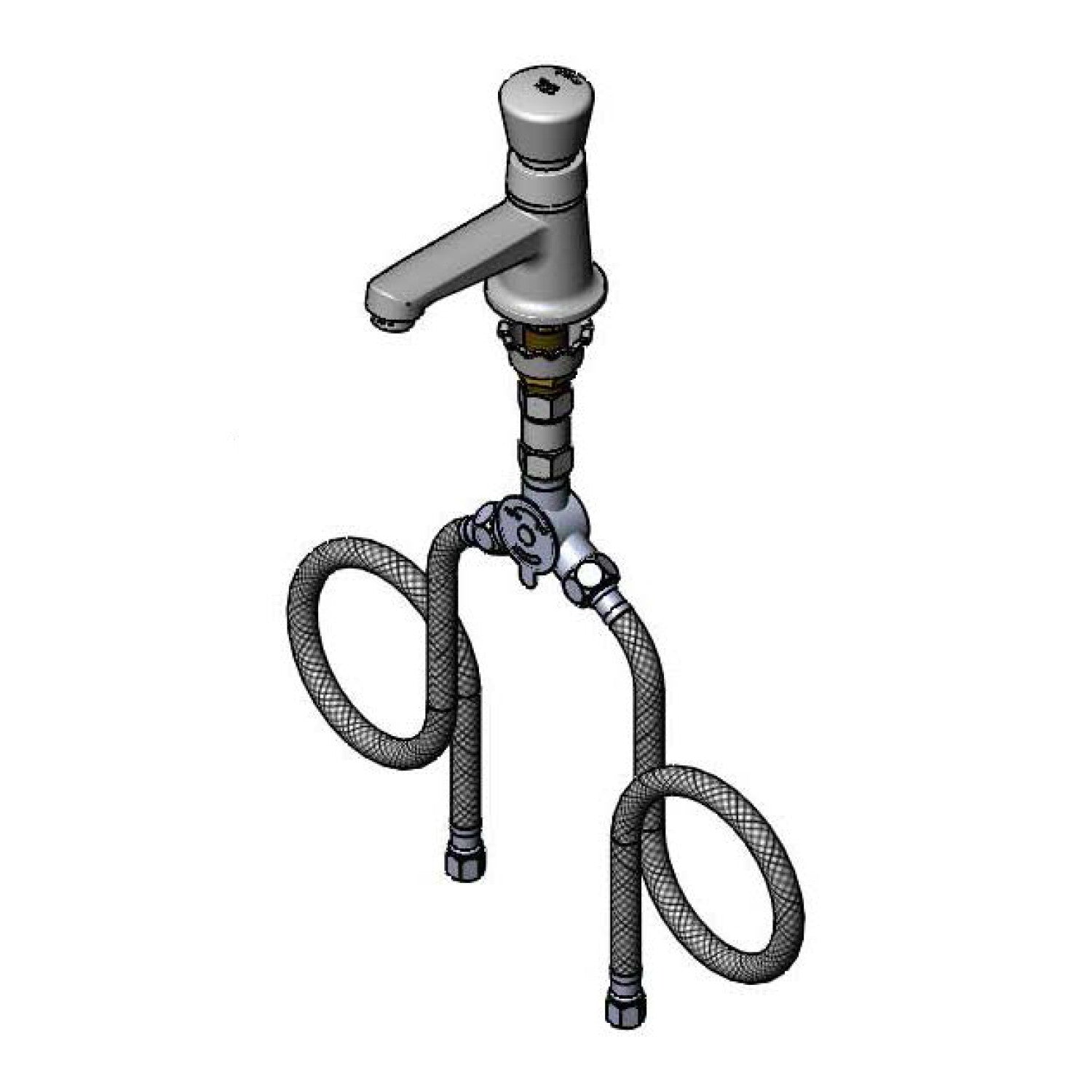 Basin Faucet, Push-Button Metering, VR 0.5 GPM Non-Aerated Outlet, Inlet Flex Hoses