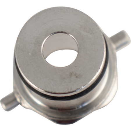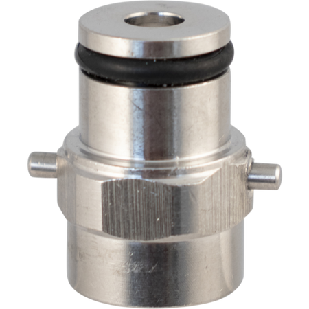 A new stainless steel, replacement body connect for the gas side of your pin lock cornelius keg keg. Features 2 pins on the side which denote it as being for gas. Does not include poppet. 9/16-18 UNF threads.