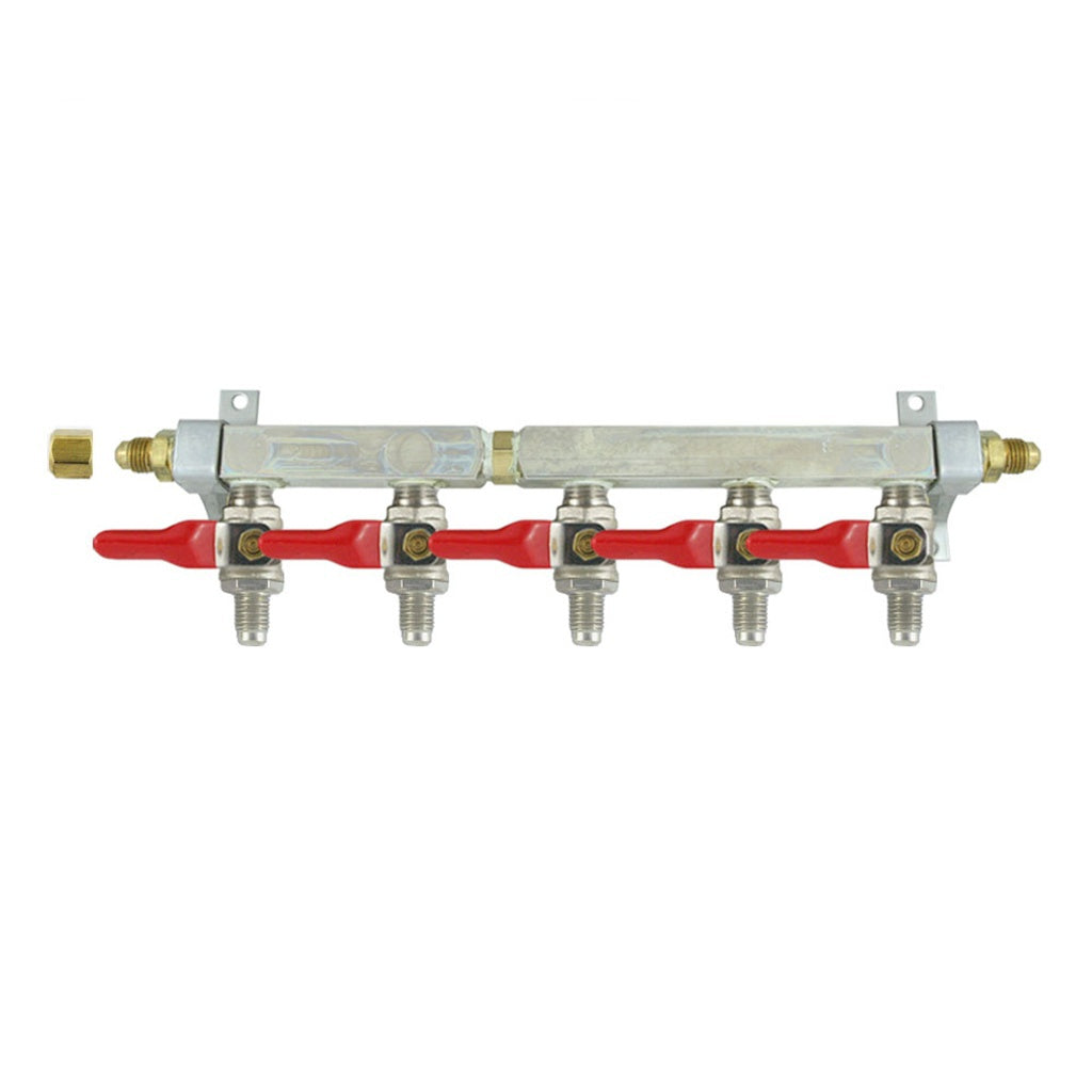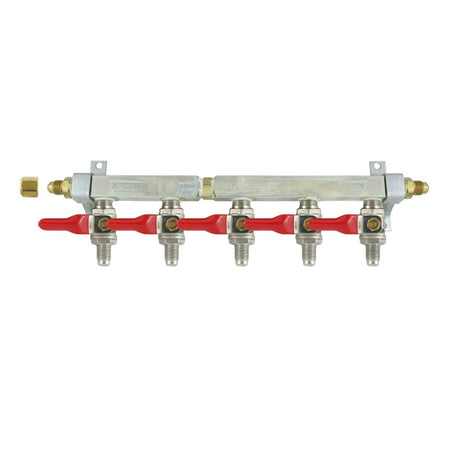 Brass Air Dist 5-Out 1/4inMfl-Shutoff No Chk