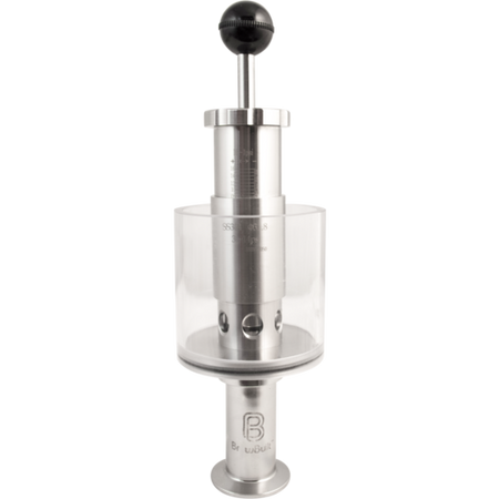 The BrewBuilt T.C. spunding valve will give you the highest level of accuracy when fermenting under pressure. Designed for use with the BrewBuilt X-Series Uni Conical Fermenter, the spunding valve attaches to the lid's 1.5" tri-clamp port where the blow off fitting is normally installed. It can also be used with any pressurizable stainless steel conical with 1.5" T.C. top ports. The polycarbonate cylinder that surrounds the spunding valve can be filled with water or sanitizer to keep your tank 100% sanitary throughout the fermentation process.
