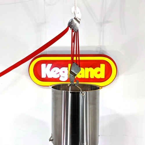 For all-in-one brewers and BIAB brewers, lifting the grains from your vessel can be daunting task. Give your back a rest and use the Lift-N-Lock pulley system to effortlessly lift up your grain bag or malt pipe and while your sweet wort drains into the kettle. This heavy-duty pulley is made from strong nylon strapping, laser cut 304 grade stainless steel and is capable of lifting large heavy loads with ease. It's the perfect pulley for lifting the heavy malt pipe from your BrewZilla or other all-in-one system, especially when brewing high gravity beers with a massive grain bill. It's a bit more expensive than other pulley systems, but there's no comparison when it comes to easily lifting or lowering the malt pipe. The included strap is 10m long by 25mm wide (32.8 ft. x 1 in.).