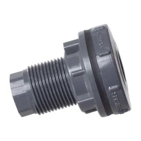 Grey, high-temp plastic bulk-head fitting for putting a fitting into a plastic cooler (rectangular and round coolers.) Has 1/2" female threads on the interior. It requires that you drill a 1" hole all the way through a cooler and a 2.25" in the outer shell plastic and insulation. This is the same bulkhead fitting we used to use to install thermometers and ball valves in Rubbermaid brand coolers. Replacement part for pre 2014 modified coolers. (Currently manufactured with PVC 1).