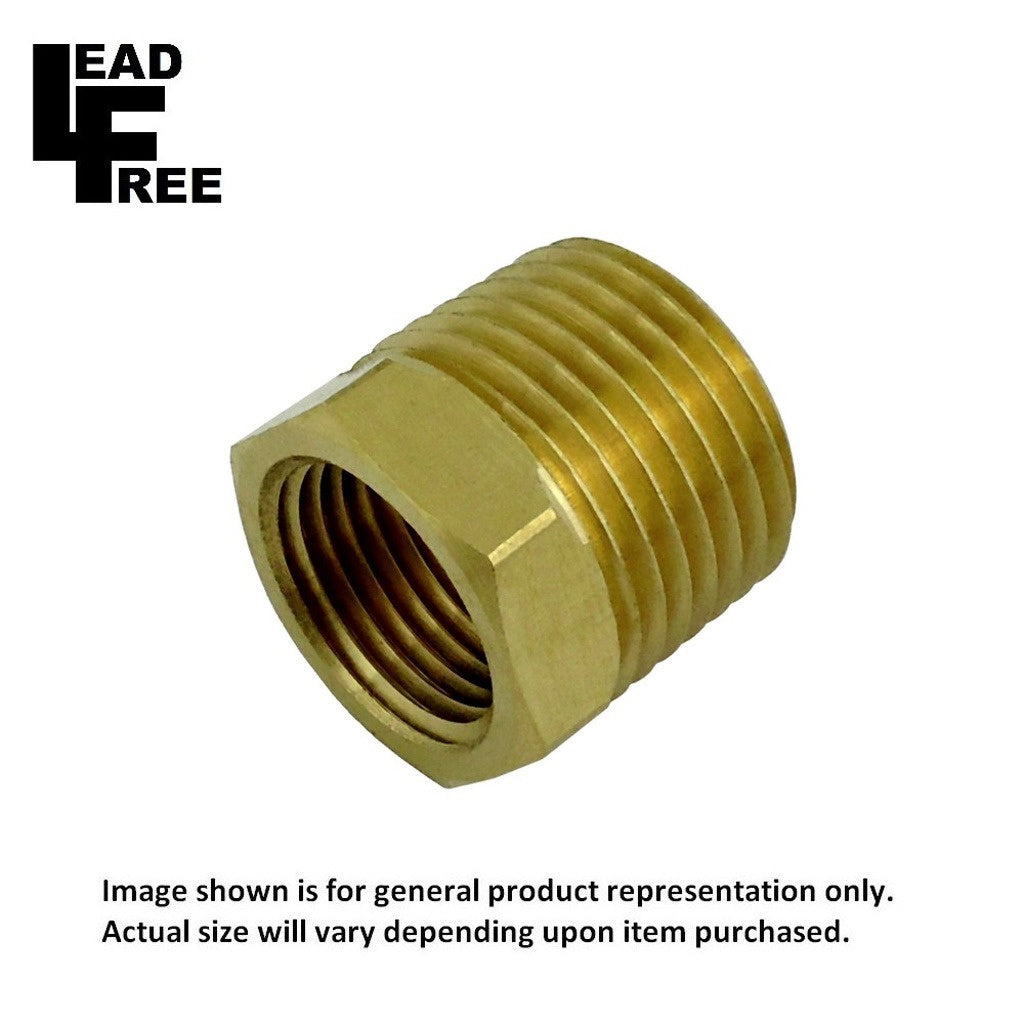 Lead-Free compliant Brass FittingsLead-free as defined by the CA Health & Safety Code 116875 (AB1953) is a maximum of 0.25% weighted average lead content of the wetted surface area of parts in contact with drinking water.Pipe to Pipe BushingSize: 3/8" MP T x 1/2" MPT