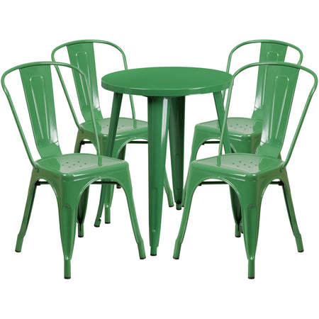 Chauncey Commercial Grade 24" Round Green Metal Indoor-Outdoor Table Set with 4 Cafe Chairs