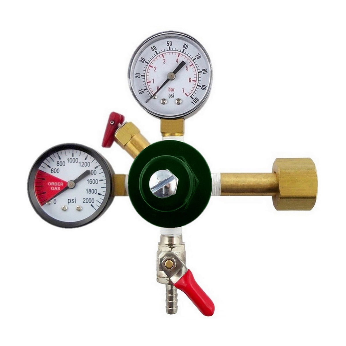 TYPE: Primary CO2 PRESSURE RANGE: 0-100 psi LOW PSI GAUGE(S): 100 psi HIGH PSI GAUGE: 2000 psi INLET: CO2 Nut & Nipple OUTLET(S): 1/4" Barb Shutoff w/ Check