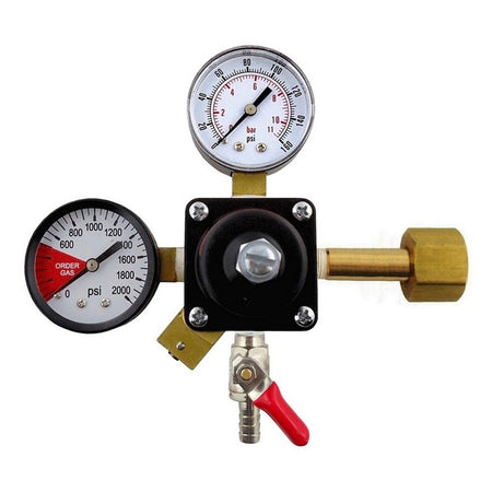 Cornelius Primary CO2 Soda RegulatorsType: CO2 Gauges: 160 lb. & 2000 lb.Outlet(s): 3/8" Barb Shutoff w/ Check ValveAll Cornelius primary regulators have left hand high pressure ports.Not findin g what you want?Foxx Equipment Company can assemble any regulator configuration you need. C all your sales representative for pricing.