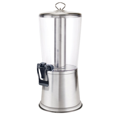 The Winco 904 Beverage Dispenser is a commercial-grade, non-insulated unit designed for high-capacity beverage service in foodservice environments. With a 2-1/4 gallon capacity and dimensions of 9-1/8" W x 10" D x 22" H, it fits easily on countertops in cafeterias, buffets, or catering stations. The clear, impact-resistant plastic bowl allows full visibility of beverage contents, while the stainless steel lid and base offer durability and professional appeal. A built-in ice core maintains cold beverage temperatures without dilution, and all components are designed for fast disassembly and easy cleaning, making this dispenser ideal for medium-volume hospitality operations.