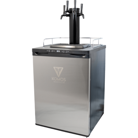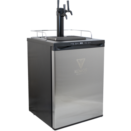 The KOMOS Kegerator offers a stunning set of features that clearly separate this unit as the most modern kegerator on the market. With more interior space than other models, the KOMOS Kegerator is designed to fit up to four 5-gallon Slimline Torpedo kegs or Pepsi-style Ball Lock Corny kegs. Whether you choose the single, double, triple, or quad tap configuration, you'll receive NukaTap stainless steel faucets, the newest in forward-sealing faucet design. Stainless faucets are a huge upgrade over the chrome-plated brass faucets commonly included with other kegerators, and you'll quickly recognize the quality of a forward-sealing beer faucet compared to the standard taps seen at your local tavern or in-law's mancave. Rather than a chrome plated tower, the NukaTap faucets are mounted to a stainless steel tower that remains cool before, during, and after each pour thanks to a tower fan diverter that recirculates cold air within the kegerator and blows it up into the tower to keep your beer lines cold and reduce foaming. From keg to faucet, your beer will pass through EVABarrier draft lines, a premium double-walled tubing designed to protect against beer oxidation. And with Duotight push-to-connect fittings, you'll have your lines connected in a snap with no need to force the tubing over barb fittings or fiddle with hose clamps. Other features you'll love about the KOMOS Kegerator include its highly-efficient cooling capacity so you'll be serving ice cold beer even in the warmest temperatures, extra wide temperature range from 26–82°F, dual gas inlets at the back, stainless steel internal floor, rolling casters, and the included KOMOS Dual Gauge CO2 regulator.