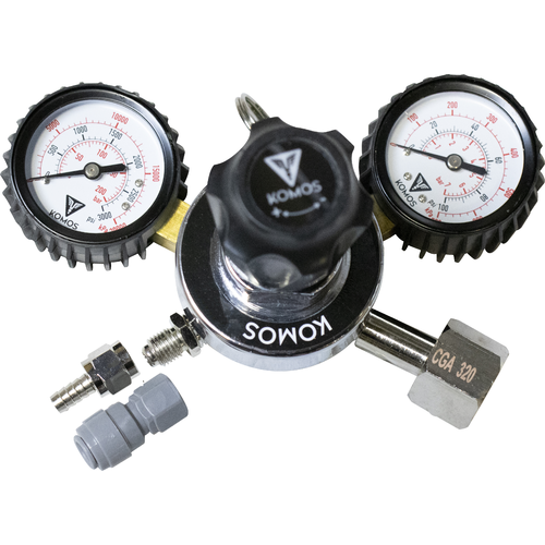 • Included KOMOS Dual Gauge CO2 Regulator maintains consistent pressure and is easily adjusted.