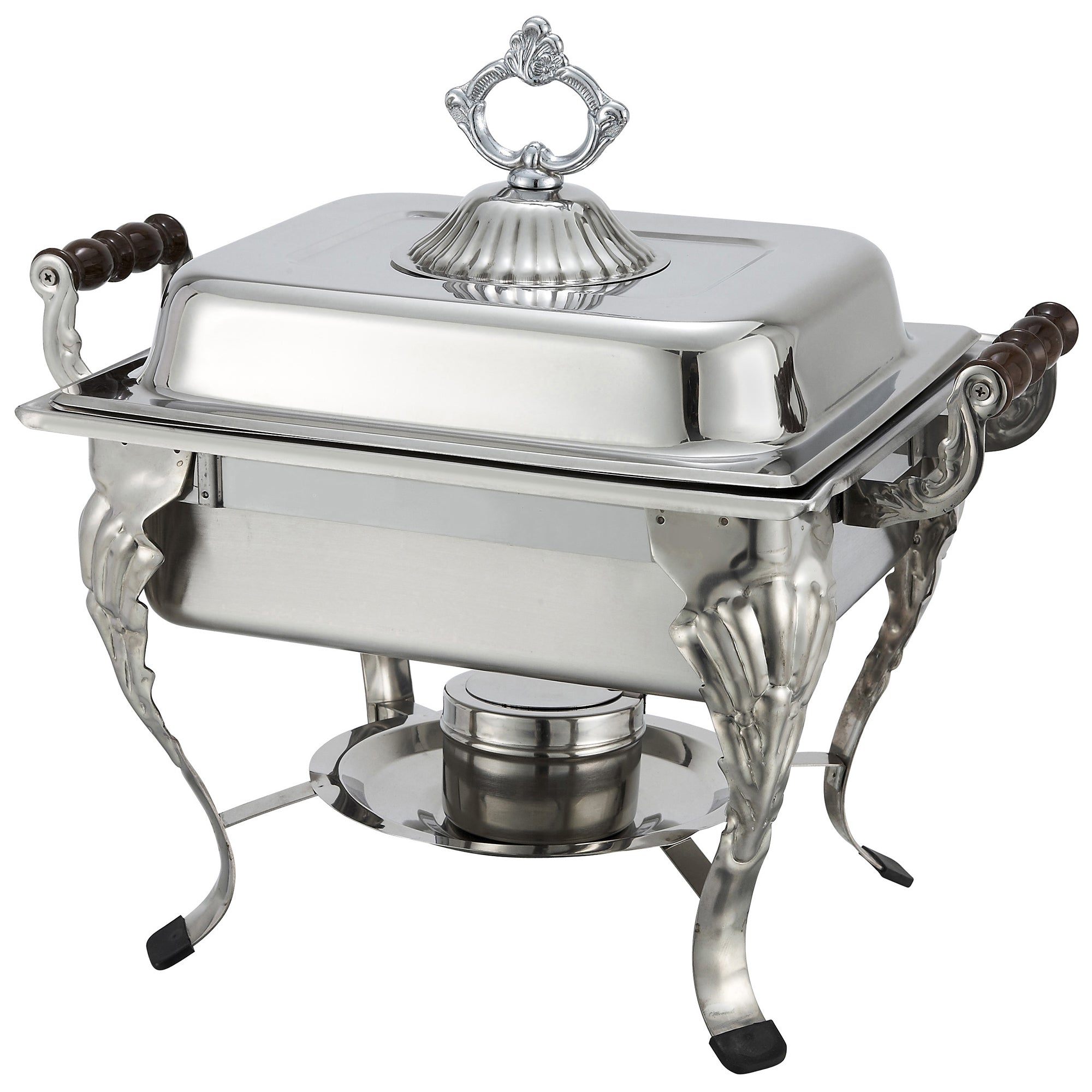Winco 508 4 Quarts Chafing Dish Square with Dome Cover Wooden Handles Stainless Steel