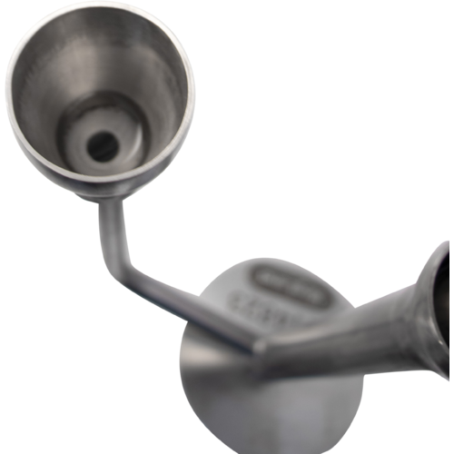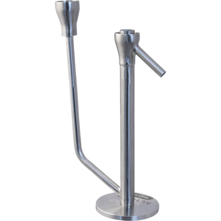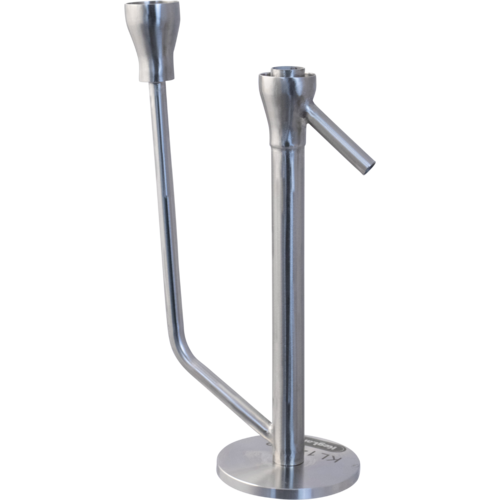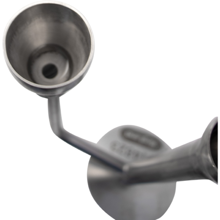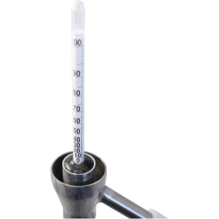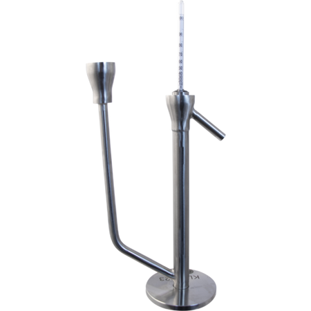 A distillers parrot is a piece of equipment that allows you to take alcohol gravity measurements using an Alcometer continuously throughout your pot or reflux run. It should be placed inline of your distillation outlet so that the drops of distillate fall directly into the tallest collection cone. But it should only placed in-line after you collect your foreshots. Your alcometer is then gently placed into the lower cone. Be careful not to drop in the alcometer before there is any liquid/distillate in the cone, as dropping it into an empty cone could break your glass alcohol meter.