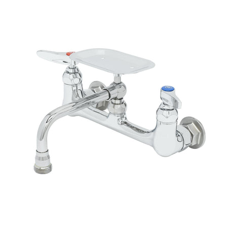 Double Pantry Faucet, 8" Wall Mount, 6" Swing Nozzle w/ Soap Dish, Lever Handles, 1/2" NPT Male Inlets