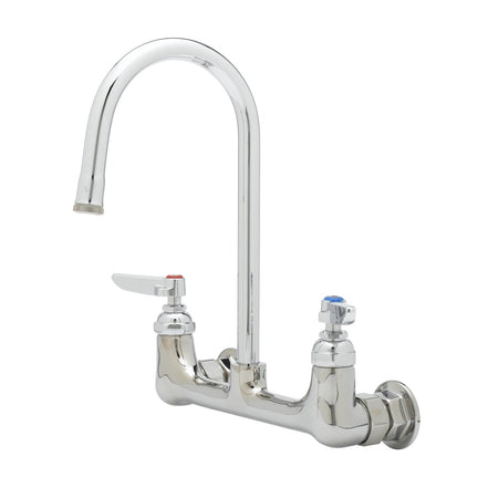 Double Pantry Faucet, 8" Wall Mount, Gooseneck, Solid Brass Chrome-Plated Handles