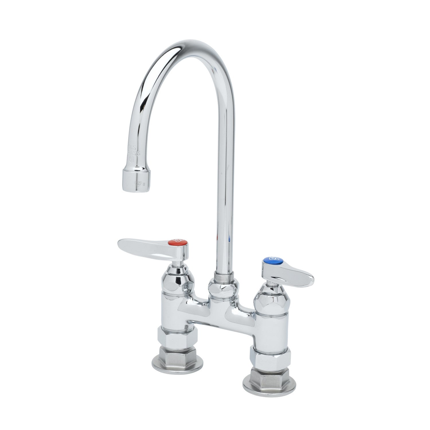 Double Pantry Faucet, Deck Mount, 4" Centers, Swivel Gooseneck