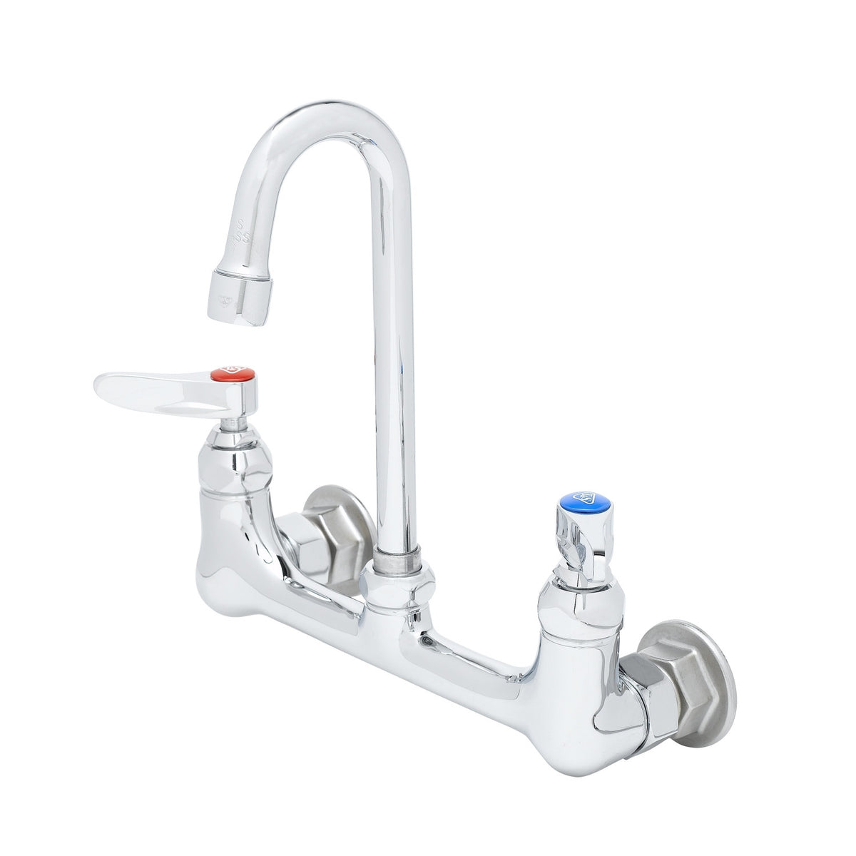 Double Pantry Faucet, Wall Mount, 8" Centers, 2 7/8" S/R Gooseneck, Lever Handles