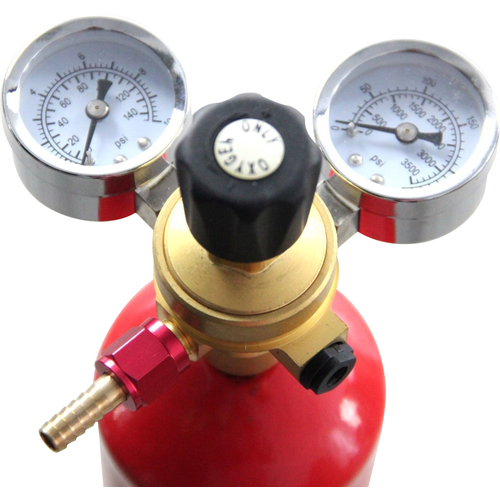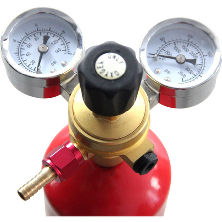 Elevate your brewing experience with our dual-gauge oxygen regulator, meticulously designed for disposable oxygen cylinders. This state-of-the-art regulator ensures that you remain in complete control of your oxygen supply. It not only indicates the remaining gas in the tank but also empowers you to fine-tune the psi of the oxygen as it departs the tank. With readings available in both psi and kPa, precision is just a glance away. Whether you're a seasoned brewmaster or a budding enthusiast, this regulator promises reliability, accuracy, and peace of mind.
