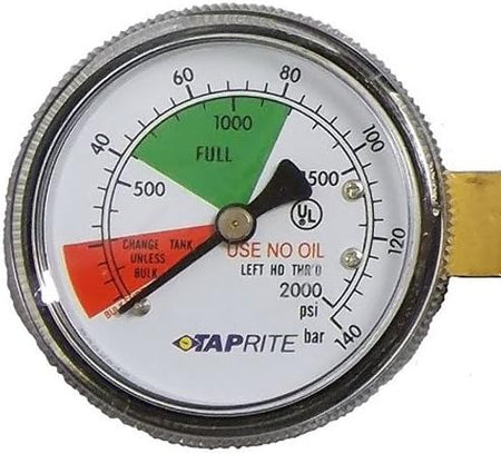 The Taprite Economy CO2 Primary Beer Regulator is designed to provide consistent and accurate pressure control for draft beer, wine, and soda systems. Built on Taprite's Economy Regulator Body, this regulator features dual high-pressure gauges to monitor both CO2 tank pressure (2000 lb.) and outlet pressure (60 lb.), ensuring smooth dispensing and reliable performance.