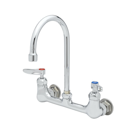 Faucet, 8" Wall Mount, Ceramas, Swivel Gooseneck, Lever Handles, 1/2" NPT Inlets
