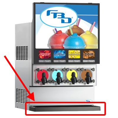 Drip tray, rectangular black plastic, for a FBD® 774 frozen beverage dispenser.