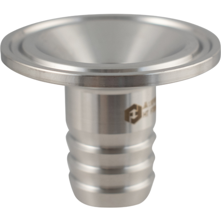 Use this barbed fitting to connect 3/4" ID tubing to a 1.5" tri-clamp fitting.