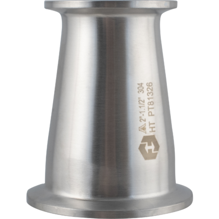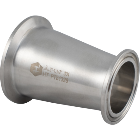 Adapt any 2" tri-clamp port or valve to work with an existing 1.5" tri-clamp fitting. The concentric design limits flow resistance as you step down from 2" T.C. to 1.5" T.C.