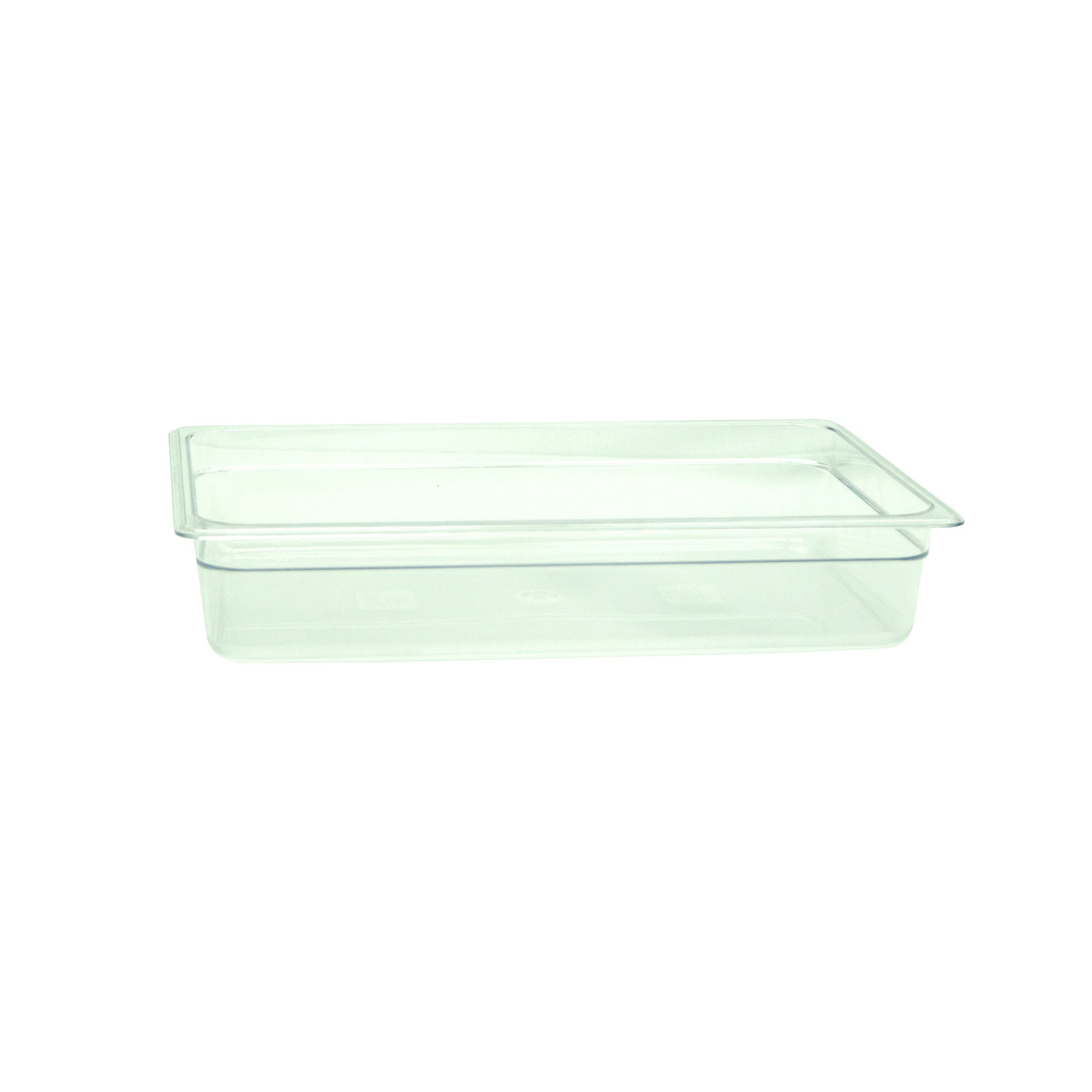 Full Size, 4" Deep, Food Pan, Clear Color, Polycarbonate, withstand temperature from -40°F up to 210°F, Dishwasher Safe, Break-Resistant, Shatter-Resistant, No Microwave, No Oven, NSF