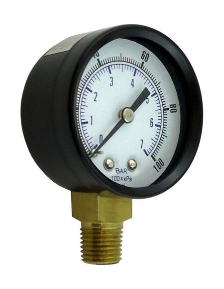 Gauge 2in-Dia- 1/4inMpt Btm-Mnt 100 Psi