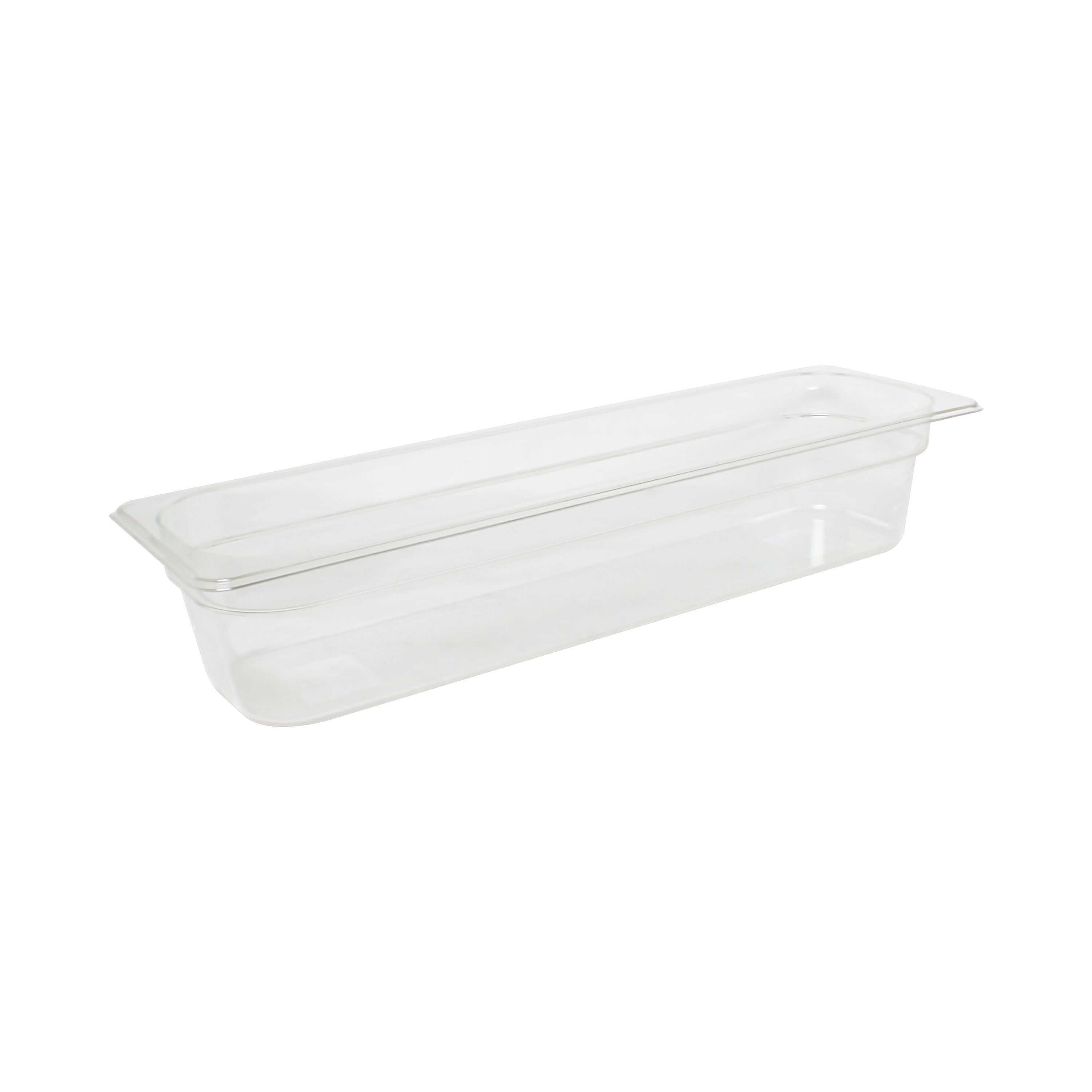 Half Size Long, 4" Deep, Food Pan, Clear Color, Polycarbonate, withstand temperature from -40°F up to 210°F, Dishwasher Safe, Break-Resistant, Shatter-Resistant, No Microwave, No Oven, NSF