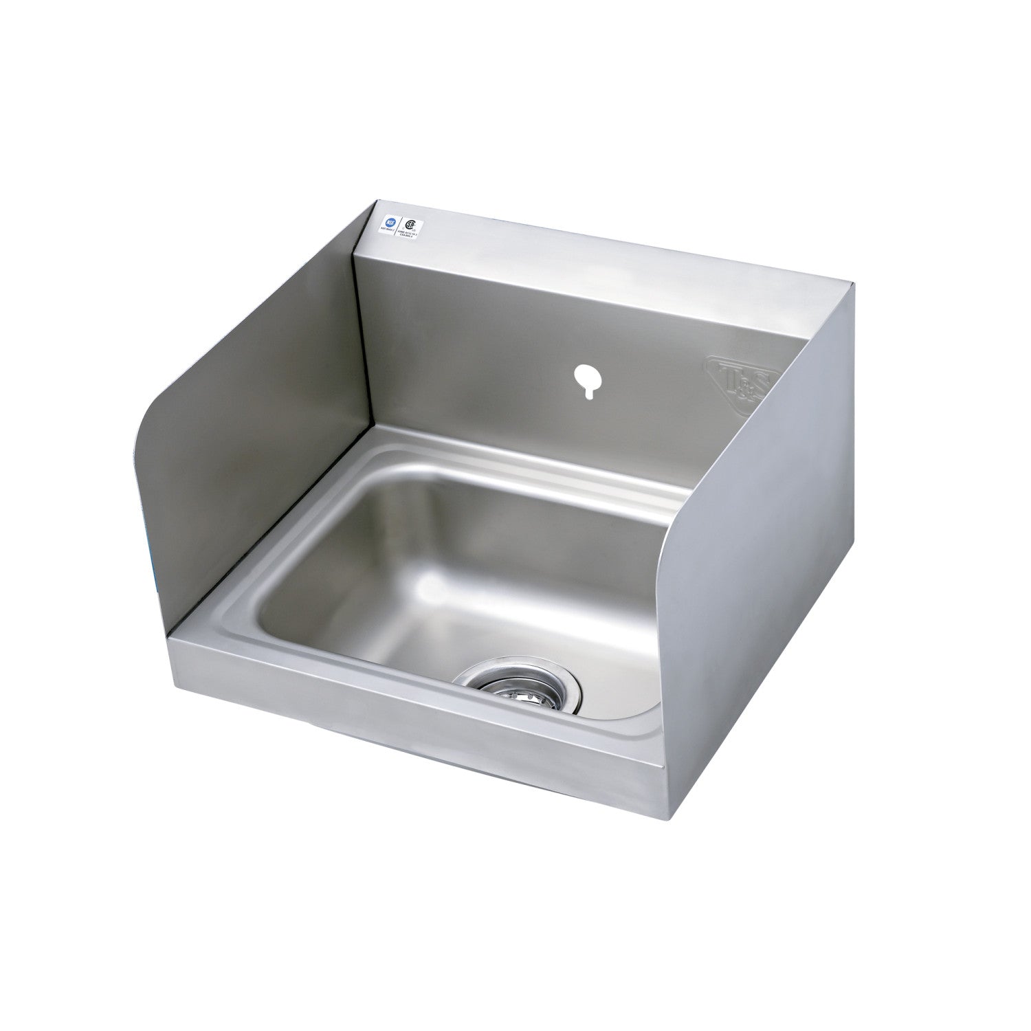 Hand Wash Sink with Backsplash, Single Hole, Side Shields, Drain Assembly, and Mounting Bracket