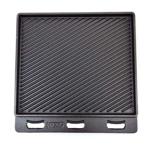 Perfect for the HIZO G14 Pizza Oven or your backyard grill, the double-sided griddle and flat skillet plate is the heavy-duty heat-retention cooking utensil you need in your arsenal. Weighing in at a whopping 9 lbs, this thick cast iron plate can really hold the heat! The HIZO double-sided skillet has a flat, smooth griddle side, and raised grill grooves for the other side. Both sides have a raised lip to handle some juices and oil to fry in. It can be moved around easily by the two removable handles in three location points on the plate.