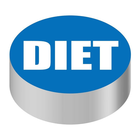 Button cap, round DIET blue cap with white lettering. Can be used on a Taprite or Wunder-Bar™ bargun.