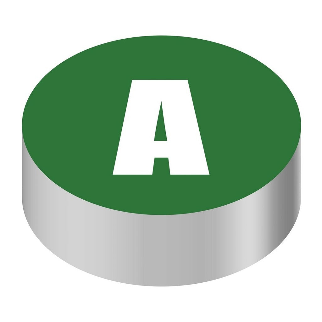 Bargun Button Cap, Round, A, Green Cap, White Letter - PH10-74-001