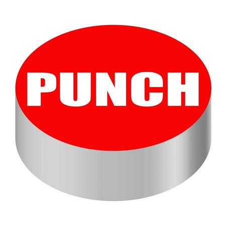 Button cap, round PUNCH red cap with white lettering. Can be used on a Taprite or Wunder-Bar™ bargun.