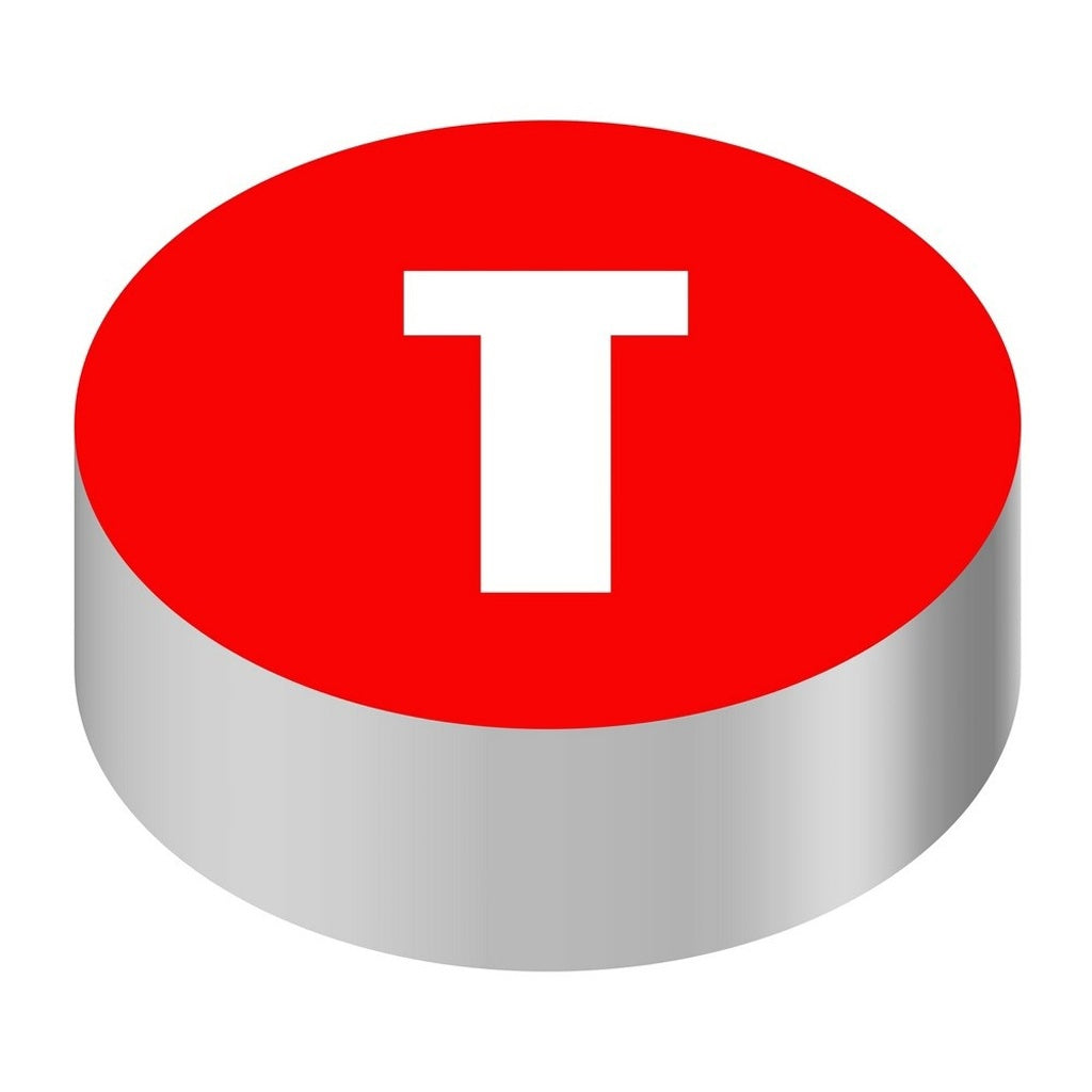 Bargun Button Cap, Round, T, Red Cap, White Letter - PH10-74-034
