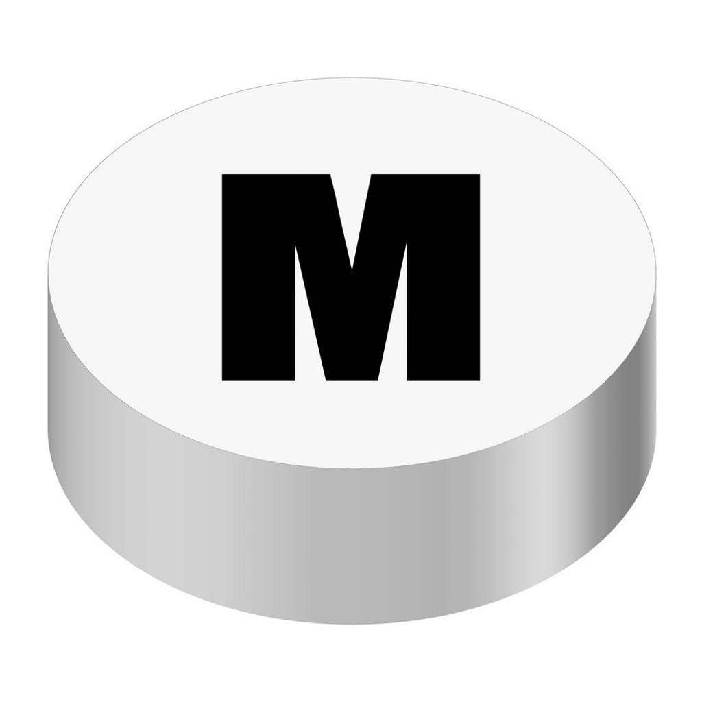 Button cap, round M white cap with black lettering. Can be used on a Taprite or Wunder-Bar™ bargun.