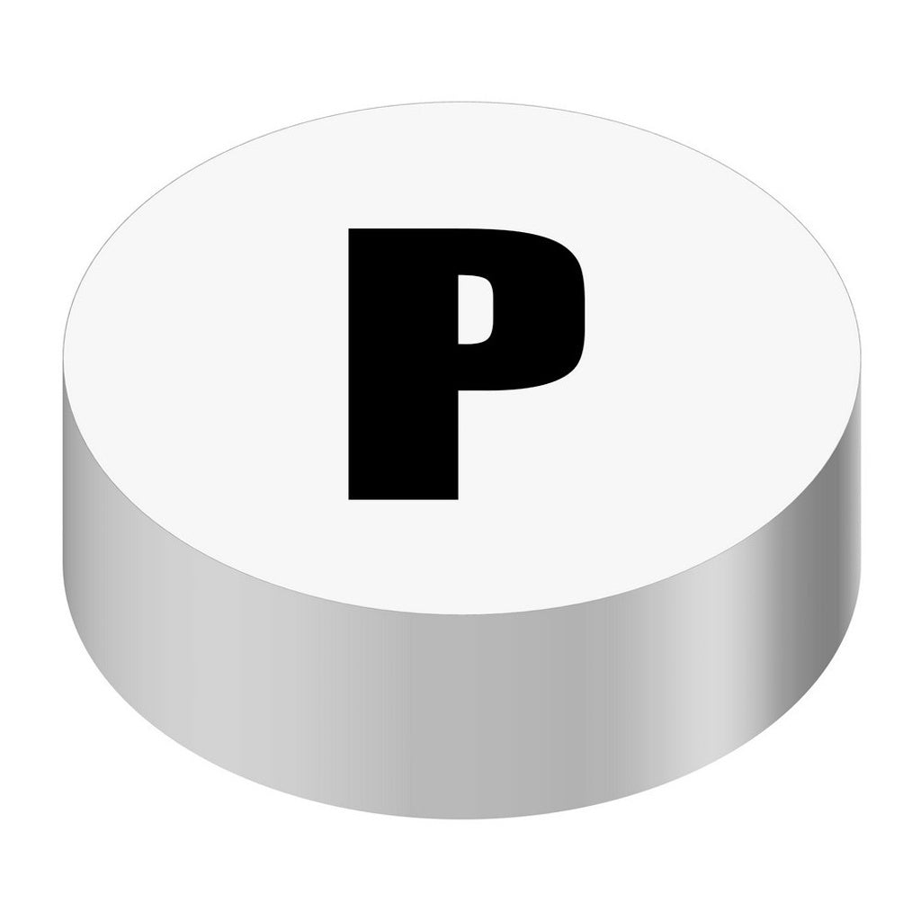 Bargun Button Cap, Round, P, White Cap, Black Letter - PH10-74-021