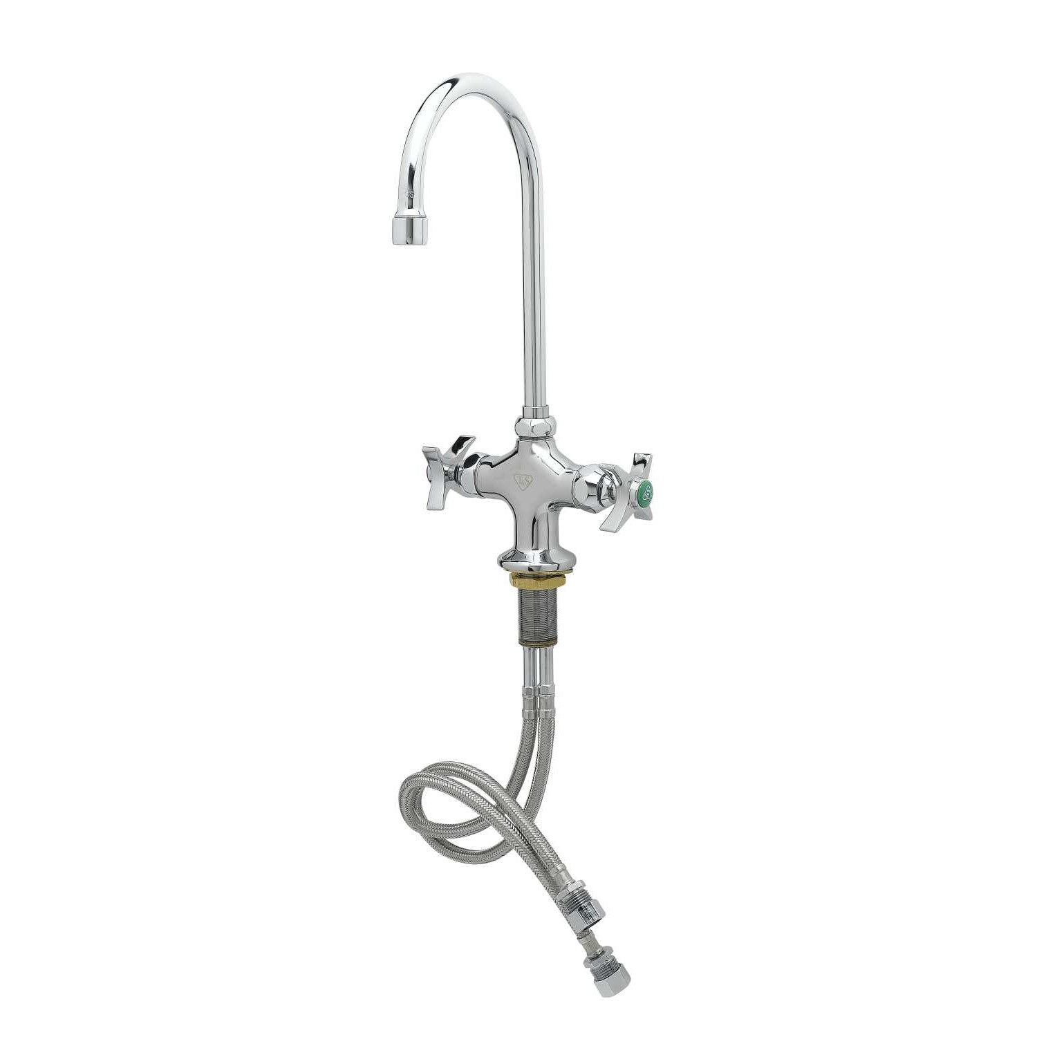 Lab Mixing Faucet, Swivel/Rigid Gooseneck w/ 2.2 GPM Aerator, 4-Arm Handles, Flex Lines