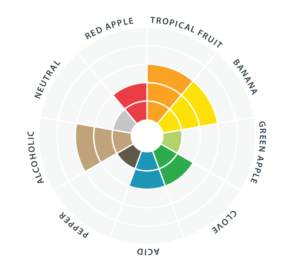 • Aroma and flavor is fruity and phenolic with a hint of alcohol.