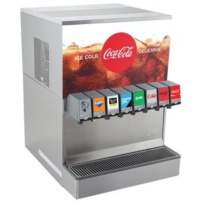 Lancer CCD 800 post-mix dispenser with 8 LEV® portion control valves. Features include reduced energy consumption, Eco-Smart Cooling™, 3-way back block, R290 refrigerant, removable refrigeration deck, and 3/4 HP compressor. 115V/60Hz. 32.27"H X 23.96"W X 28.49"D