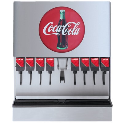 IBD30H 4500 post-mix ice drink dispenser for cubed ice has 8 LEV® self-serve lever valves, medallion merchandiser, insulated 250 lbs ice bin, low-ice indicator, ice agitation, 3-1-1-3 manifold, and key lock switch. 115V/60Hz. 30"W x 30.5"D x 35.375".