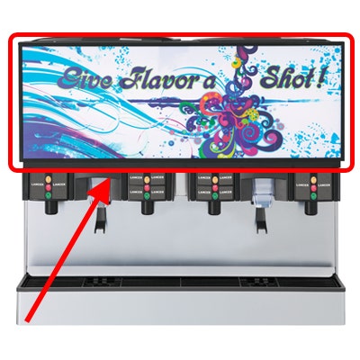 Merchandiser assembly for a Lancer® FS44 Flavor Select ice drink dispenser.