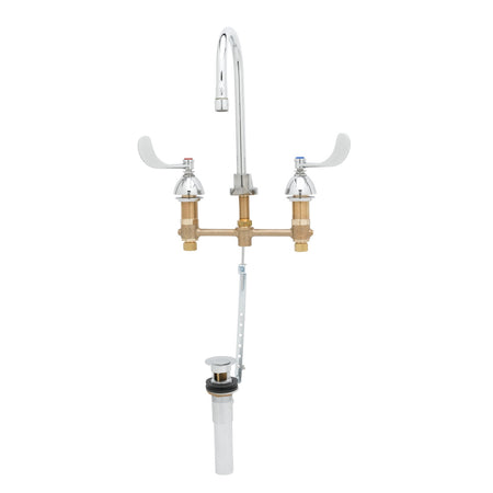 Lavatory Faucet, Concealed Body, 8" Centers, Swivel/Rigid Gooseneck, Wrist Handles, Pop-Up