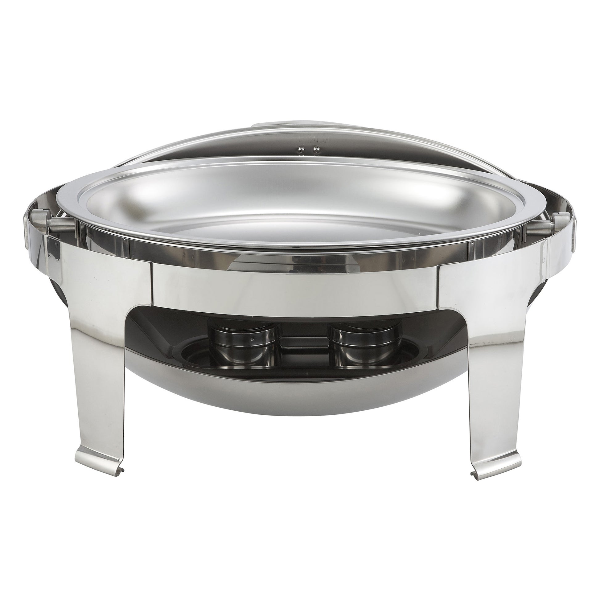 Winco 603 8 Quarts Stainless Steel Roll Top Oval Chafing Dish with Pans