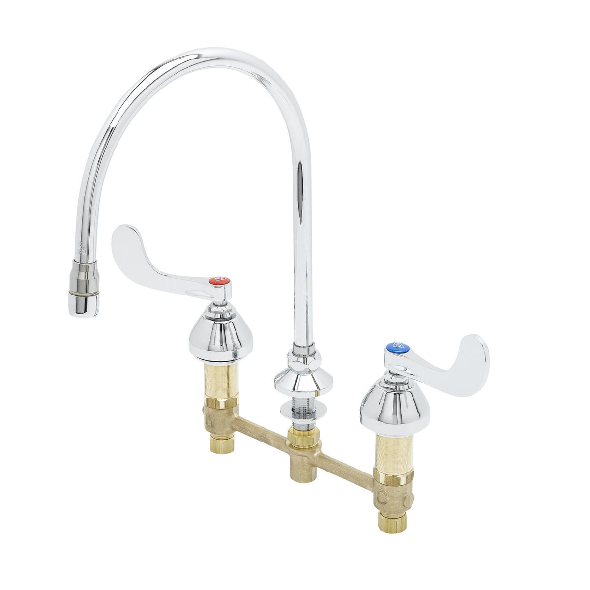 Medical Faucet, 8" Centers, 135X Swivel Gooseneck, Non-Splash Aerator, Ceramas, 4" Handles
