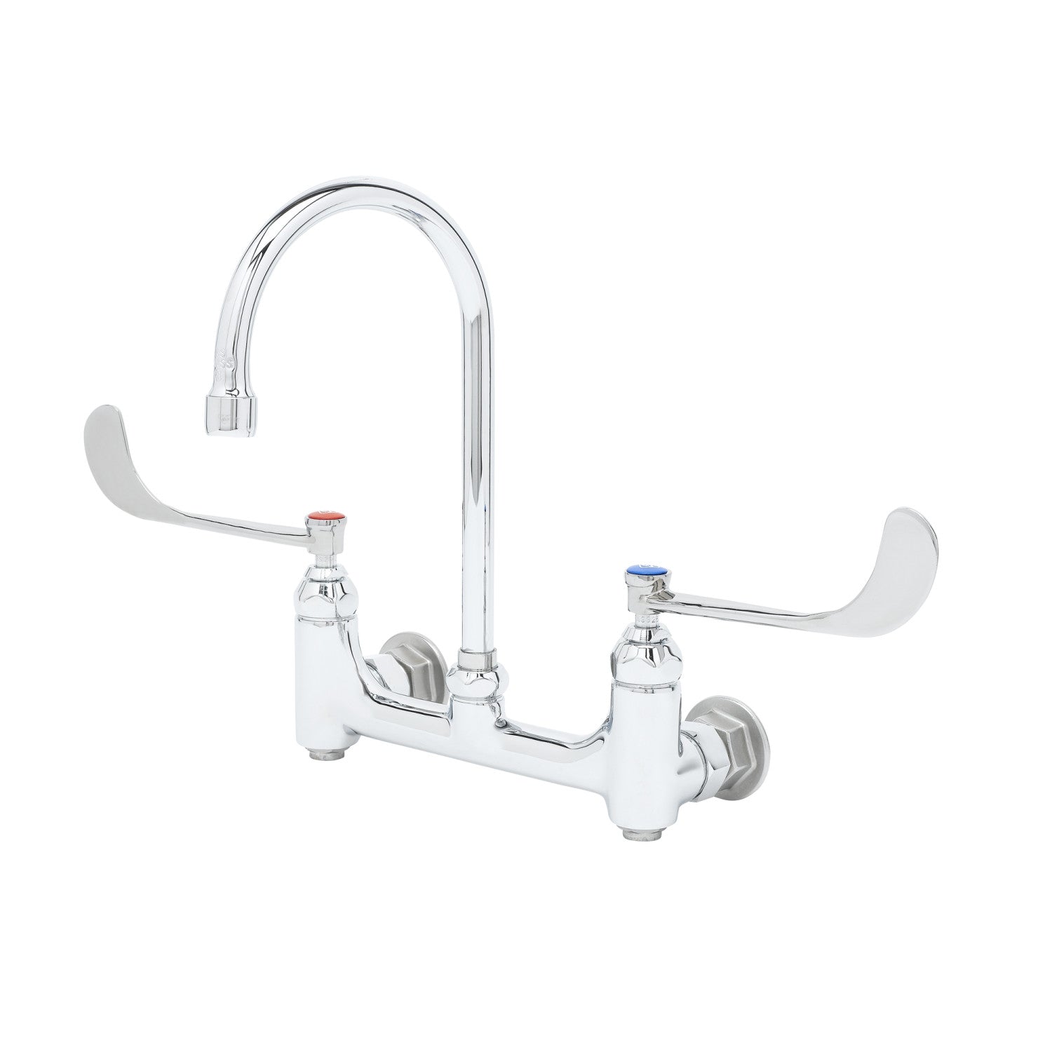 Medical Faucet,8" Wall Mount,Swive/Rigid Gooseneck, 6" Wrist Handles, Built-In Stops