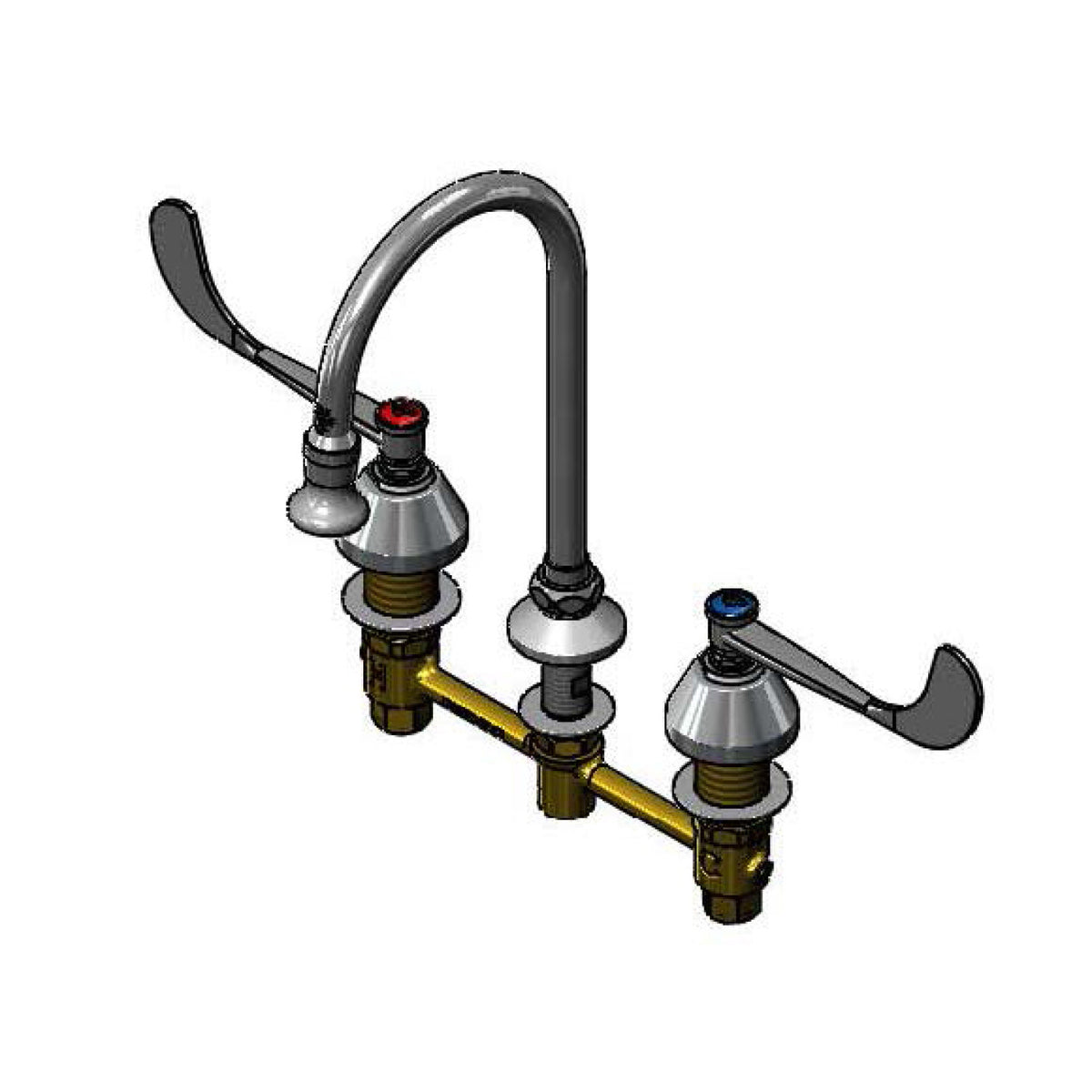 Medical Faucet, Deck Mount, 8" Centers, Swivel/Rigid GN w/Rosespray, 6" Wrist Handles
