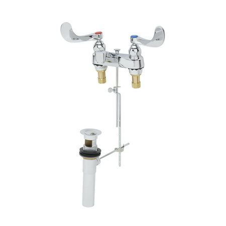 Medical Faucet, Deck Mount, Cast Basin Spout, Aerator, 4" Wrist Action Handles, Pop-Up