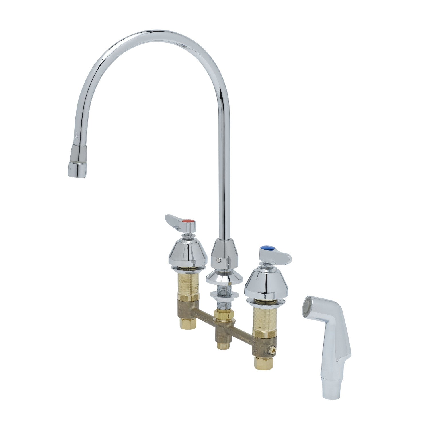 Medical Faucet w/Sidespray, 8" Centers, Swivel Gooseneck, Lever Handles