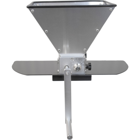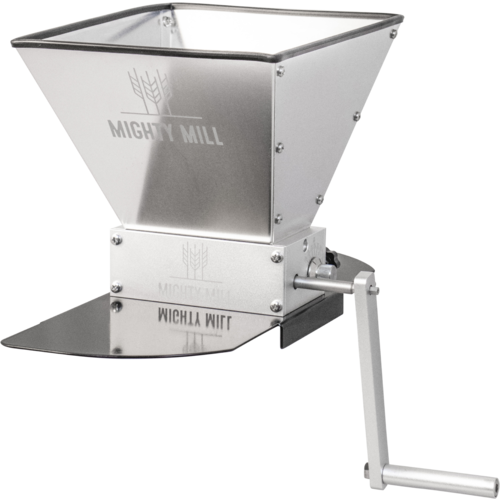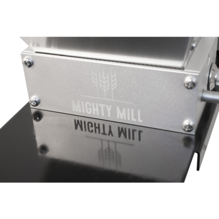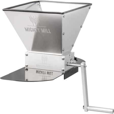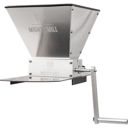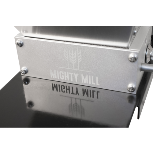 Milling trouble never hangs around when it hears this Mighty sound! The Mighty Mill will be a superhero in your brewery while still being one of the most affordable full grain mill setups. Featuring 304 stainless steel knurled rollers, 7-pound aluminum hopper, with base board and mounting hardware included. Easily operate via the crank handle, or remove the crank and rotate the driven roller with an electric drill. The adjustable rollers can be set in a gap range from 0.025" to 0.1", allowing you to fine tune your crush based on the grain and personal preference.